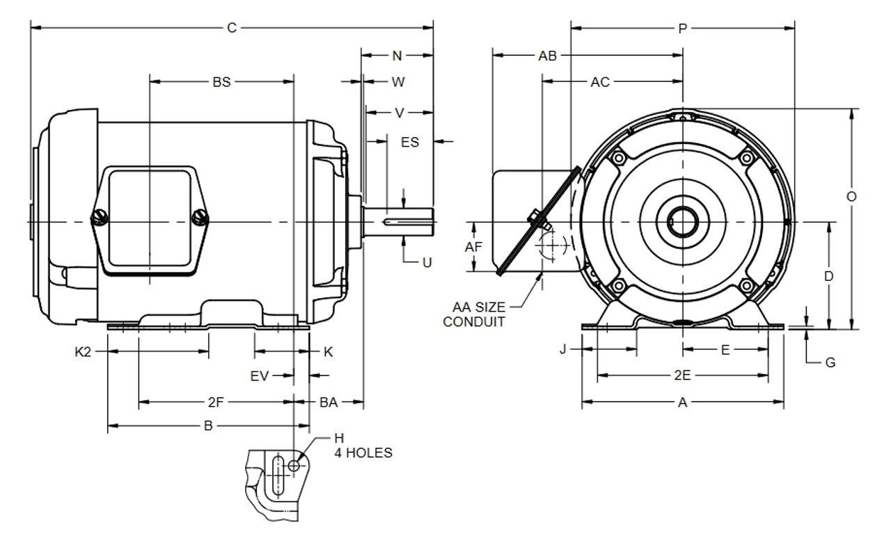 - NEMA 143T frame Keyed Shaft 7/8″ Diameter x 2 1/4″
