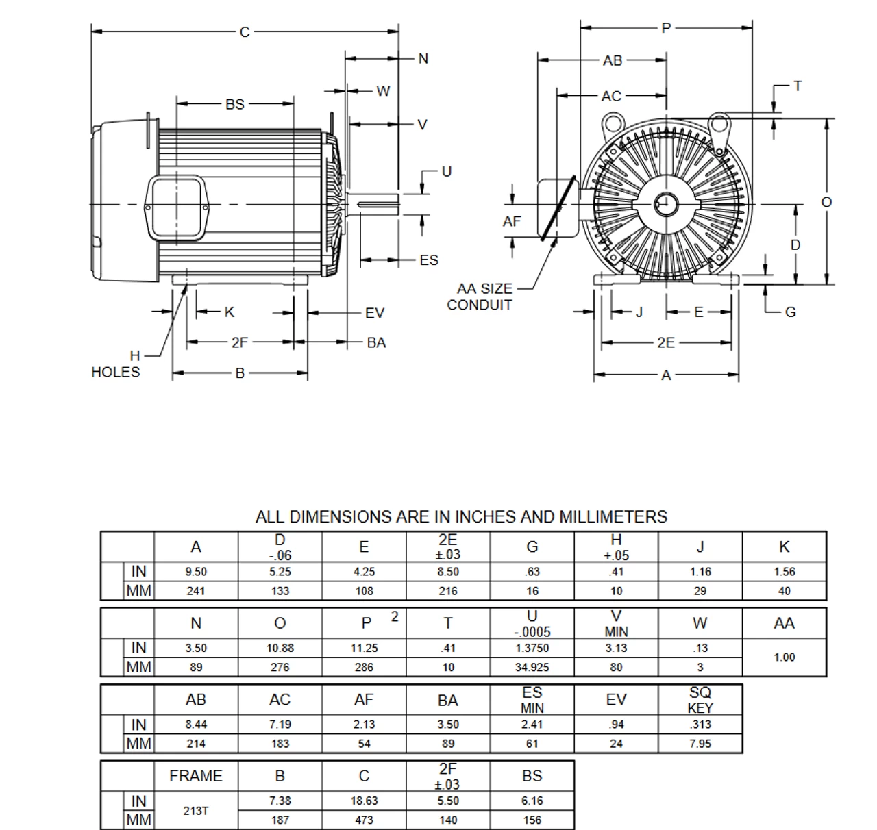 - NEMA 215T frame Keyed Shaft 1 3/8″ Diameter x 3 1/2″