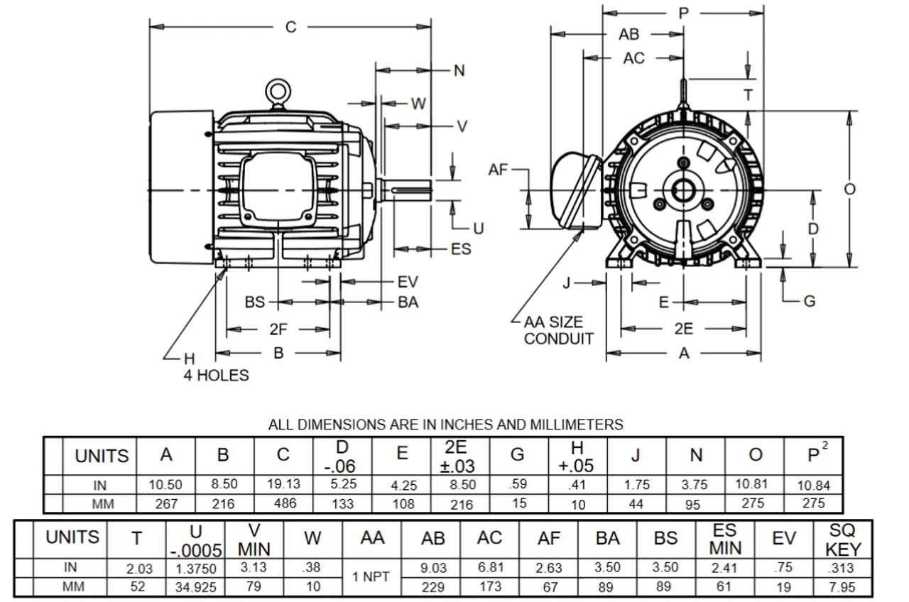 - NEMA 215T Cast Iron frame Keyed Shaft 1 3/8″ Diameter x 3 3/8″